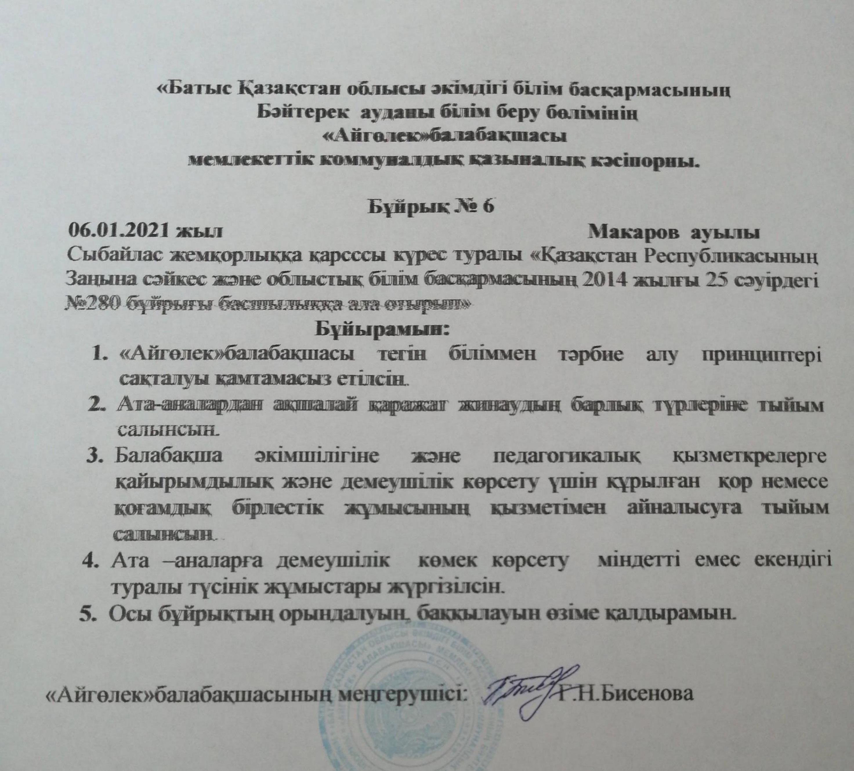 Бұйрық №6